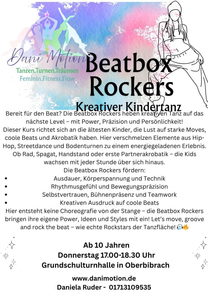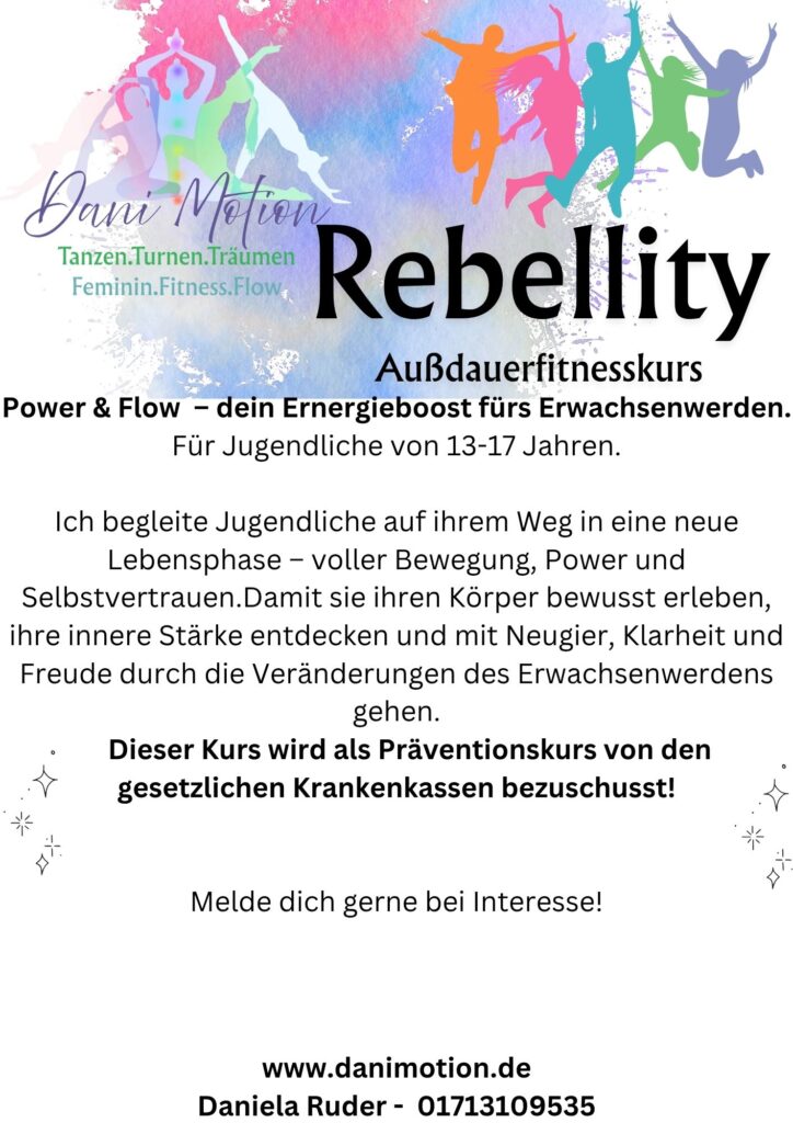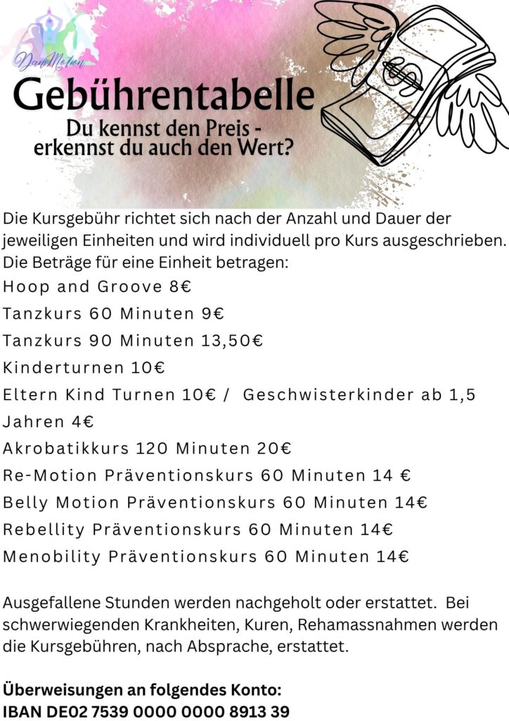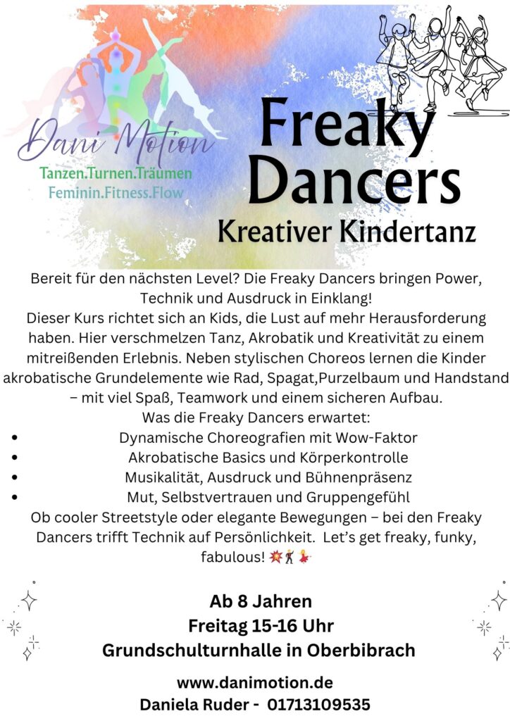 Sport ist mir sehr wichtig, ich habe Spaß daran und bin gut darin. Deshalb habe ich meine Leidenschaft weiterentwickelt und neben den Tanzkursen biete ich noch Turn-, und Akrobatikkurse für Kinder und Fitnesskurse für Erwachsene an. Neben meinen jetzigen Kursen habe ich schon in Vertretung Mama Baby Kurse geleitet und war in Schulen für das Fach differenzierten Sport und Tanz tätig.
